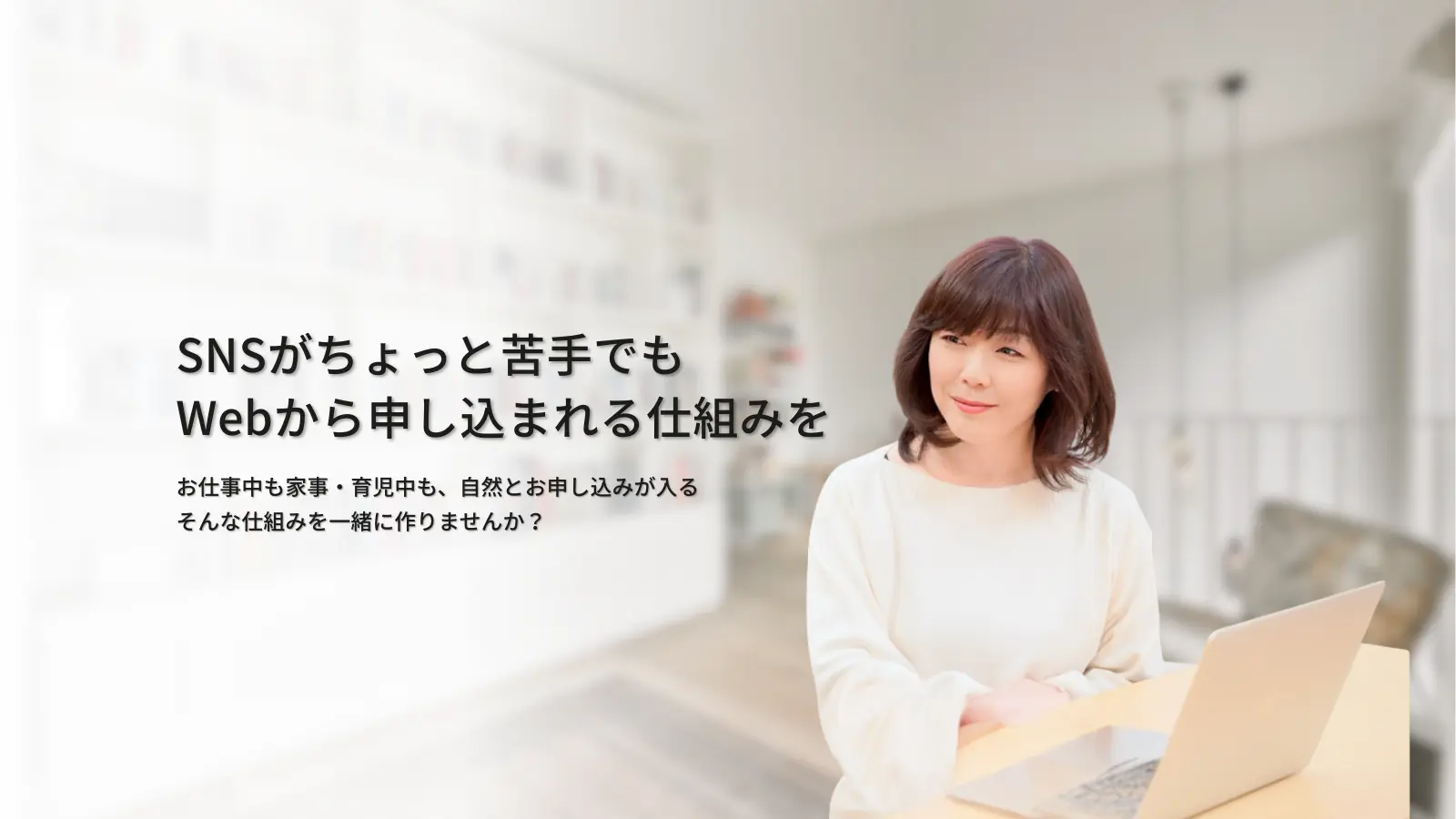 紹介中心の集客に限界を感じている起業女性のための、Web集客の仕組み化と発信の時短化を両立するマンツーマン伴走サポートです。