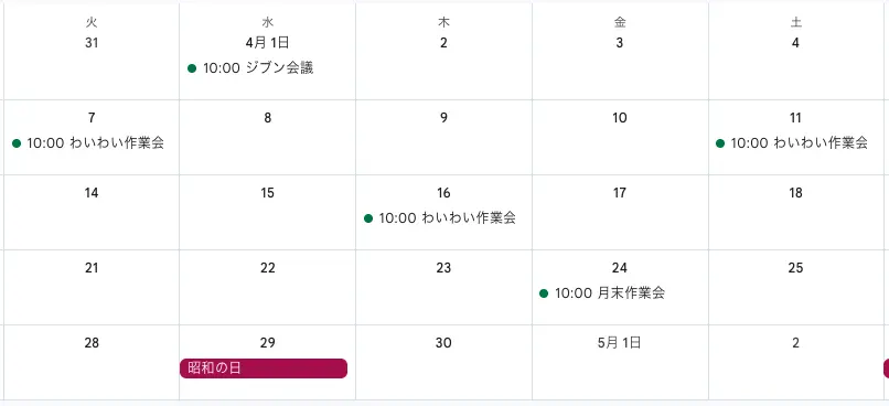 グループ作業会は、原則、Web周りの作業会(質問可能)とします。月末は経理作業などのもくもく会に当てていただいてもOKです。(このへんは今とあまり変わりません)